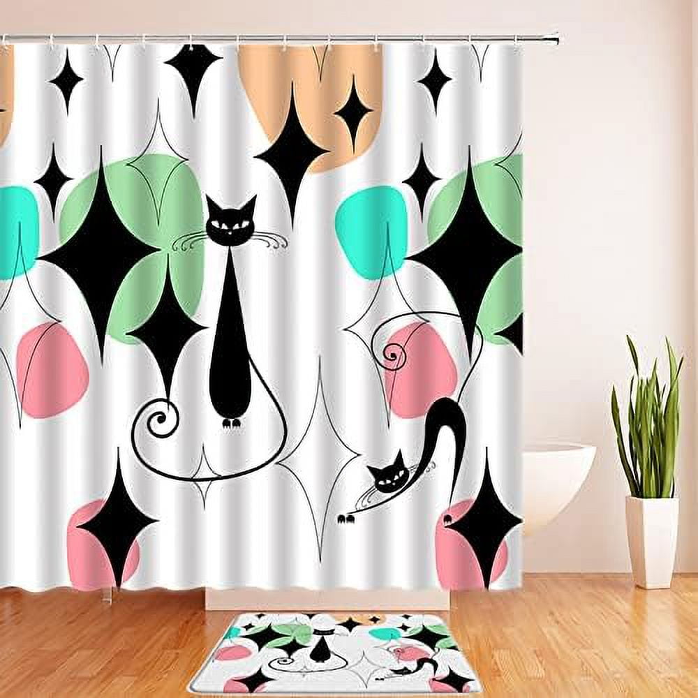 MKHERT Black White Pink Cat Shower Curtain Bath Curtain Waterproof fabric Polyester Curtains Shower Curtain Cats check out our cat shower curtain selection for the very best in unique or custom, handmade pieces from our shower. Perfect for cat lovers, these durable curtains add charm. these shower curtain designs range from colored photo prints of cats to whimsical cartoons designs to cats and dogs hanging out together. explore our delightful cat shower curtains. Shower Curtain Cats.